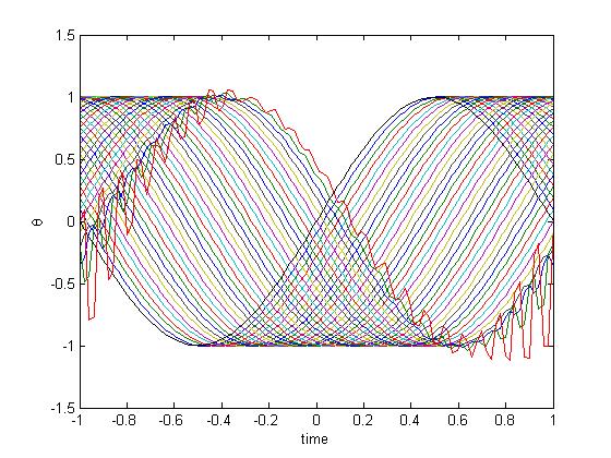 - Central in time (leapfrog) and central in space - conditionally stable [100 time steps with C=0.5; and 38 time steps with C=1.5].